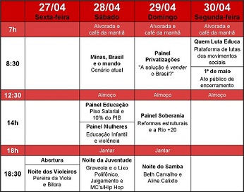 PROGRAMAÇÃO do 4º Encontro dos Movimentos Sociais de Minas Gerais